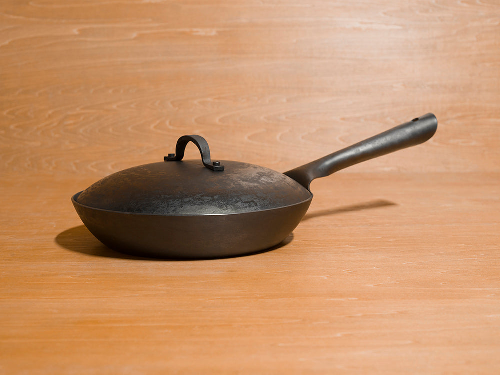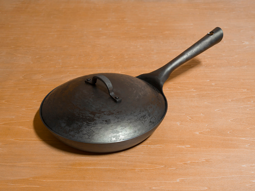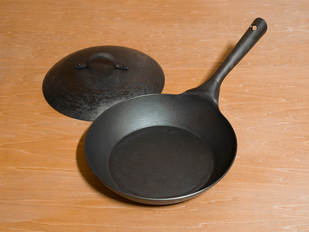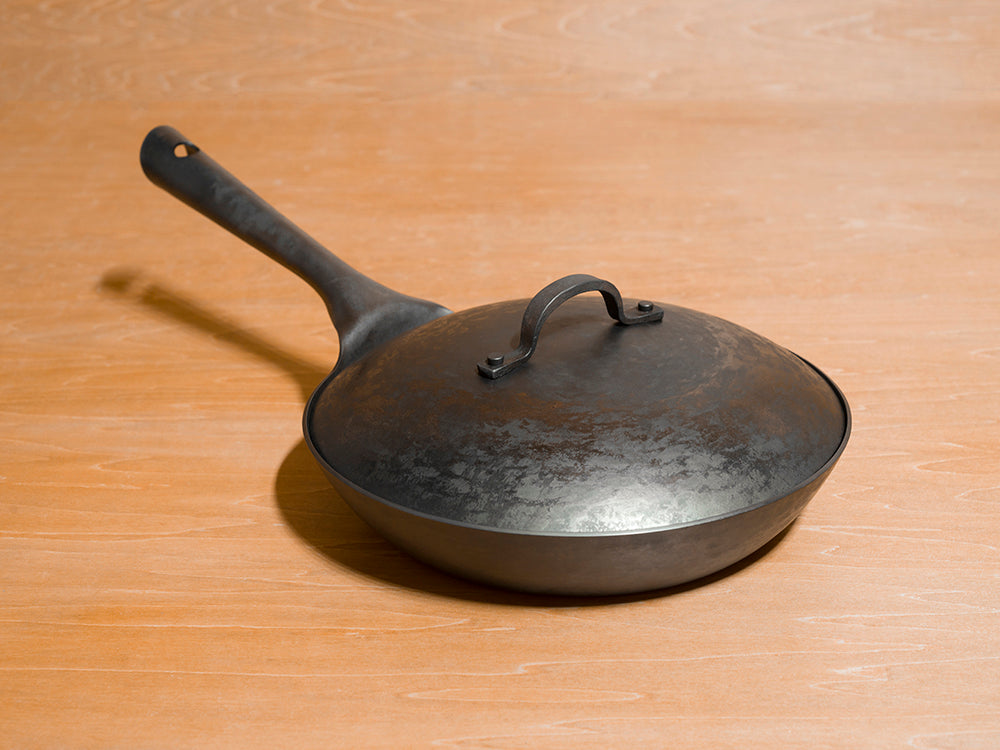 Real Classic フライパンの大きな特徴として、手作りでは珍しい専用の蓋が用意されています。冷間加工だからこそ、蓋が内側にぴったりと合うまで微調整することが可能です。 蓋も同じく熱伝導性に優れた鉄製で、煮込んだり、蒸し焼きにしたりと料理の幅が拡がります。そのままオーブンに入れて調理することもできます!