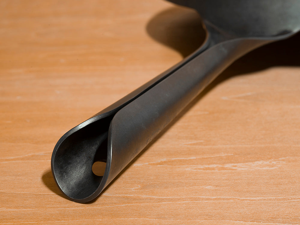 絞り技法は全体を均一な厚みに成形でき、食材に効率的にムラなく熱を伝え美味しく調理できます。熱伝導性・蓄熱性は高純度2.3ミリの鉄板を使うことでさらに向上しています。