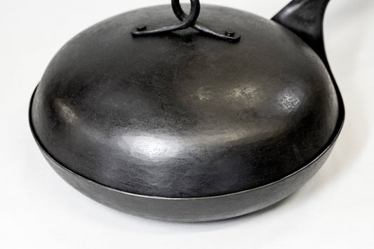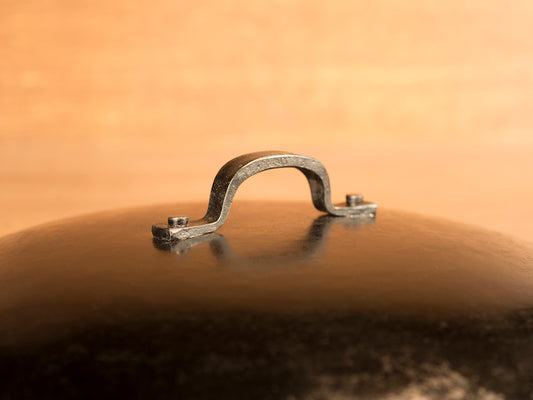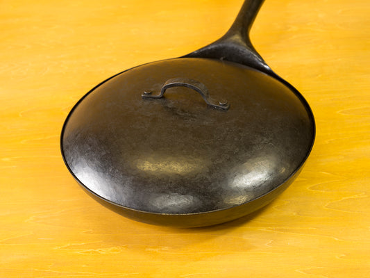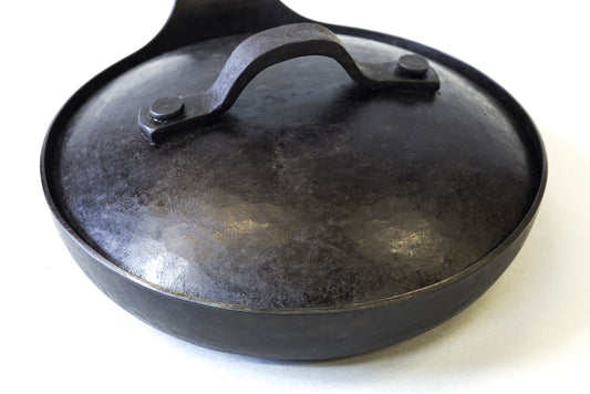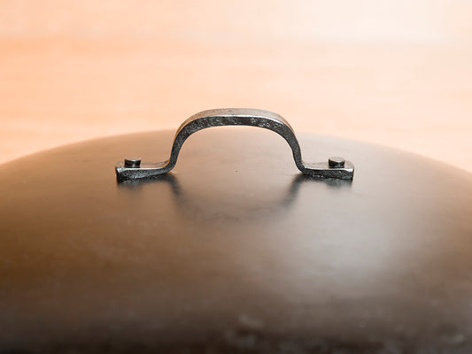 Real Classic Ironware の大きな特徴として、手作りでは珍しい専用の蓋が用意されています。冷間加工だからこそ、蓋が内側にぴったりと合うまで微調整することが可能です。 蓋も同じく熱伝導性に優れた鉄製で、煮込んだり、蒸し焼きにしたりと料理の幅が拡がります。そのままオーブンに入れて調理することもできます!